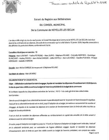 01-2026-VC-HL Délibération autorisant le maire à engager, liquider et mandater les dépenses d'investissement 2026 (dans la limite du quart des crédits ouverts au budget de l'exercice précédent) du budget de la commune