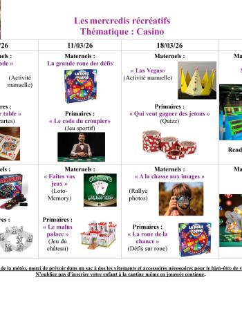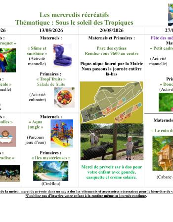 Vos enfants pourront être accueillis le mercredi de la façon suivante :